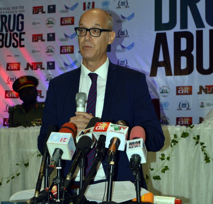 Mr. Oliver Stolpe (Middle), Country Director, UNODC, receiving a Delegation of Centre for Ethical Re